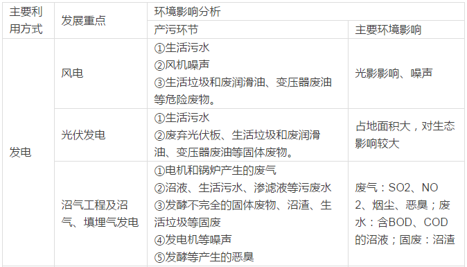 可再生能源行业产生的工业固废主要包括沼气工程的沼渣和垃圾焚烧产生的炉渣、飞灰。风电、光伏、垃圾发电等产业将产生少量的危险废物,应加强对收集、暂存、转移等环节的管理,健全危险废物全过程环境监管制度,增加危险废物处置企业,以实现集中安全处置,严禁排放和擅自处理危险废物。