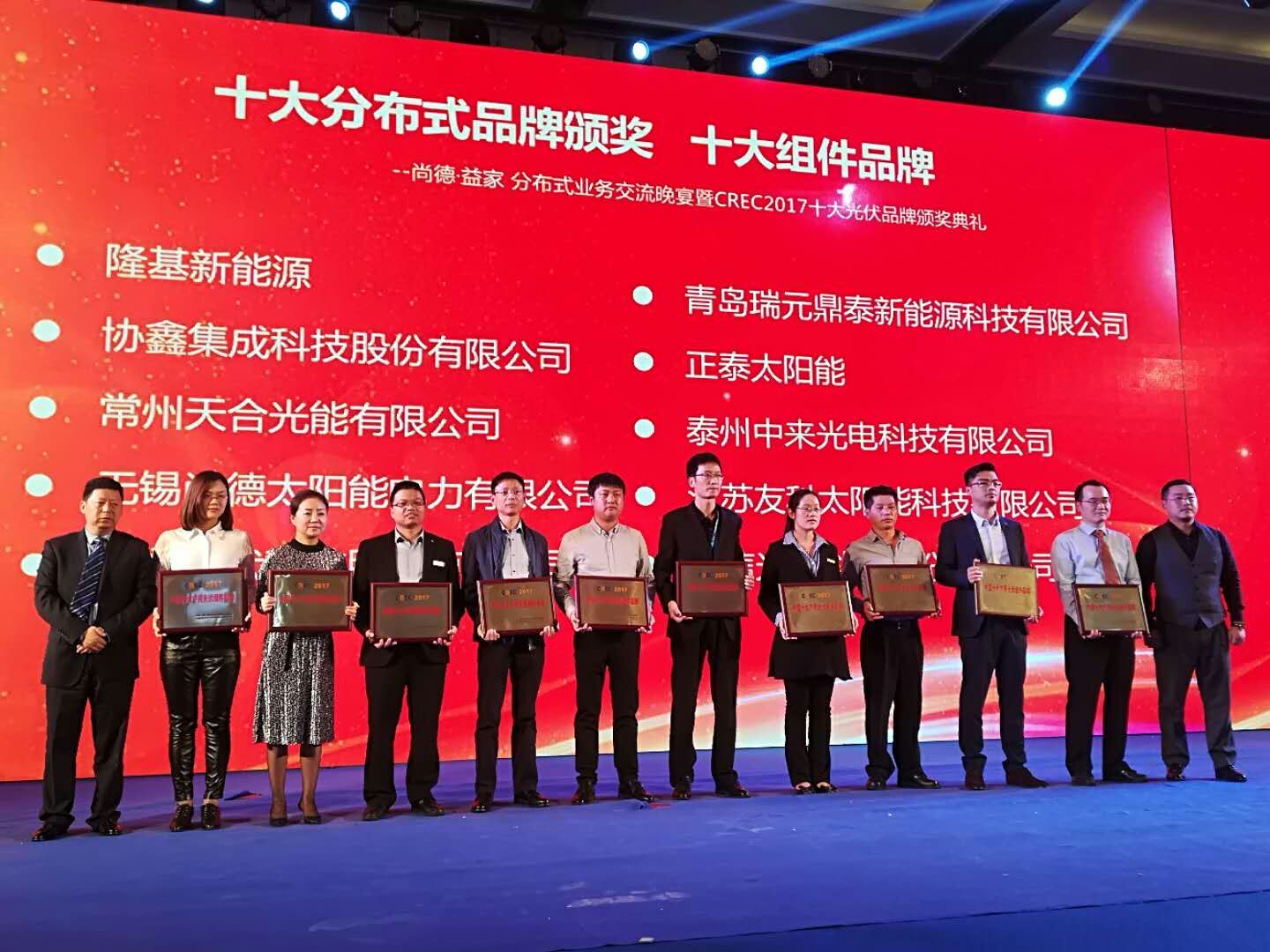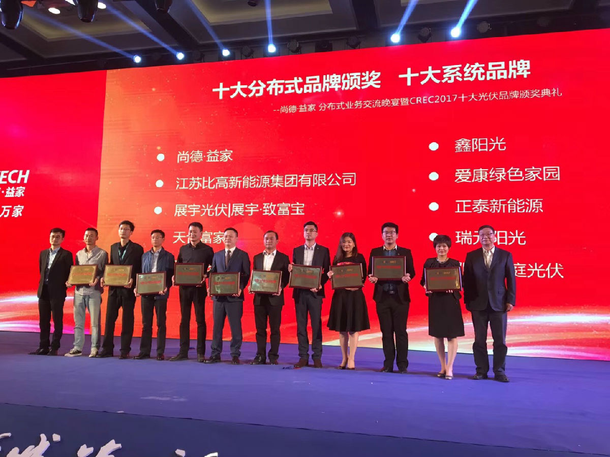 值得一提的是,论坛同期还举办了CREC2017 中国十大户用光伏品牌颁奖典礼。为促进民用分布式光伏市场健康发展,杜绝出现“劣币驱逐良币”的不良市场现象,由中国(无锡)国际新能源大会暨展览会组委会、江苏省屋顶分布式光伏发电公共服务平台联合主办了“CREC2017中国十大户用光伏品牌评选”活动。Solarbe记者获悉,瑞元鼎泰成功获得“中国十大户用光伏户用品牌和中国十大户用光伏组件品牌”奖项,瑞元鼎泰市场总监张丹出席了颁奖典礼。