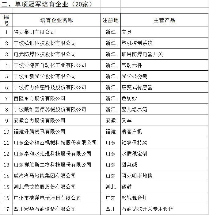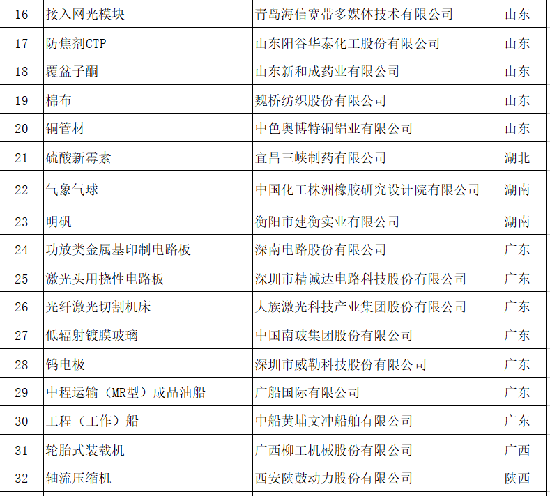 日前,工信部公示了第二批制造业单项冠军企业和单项冠军产品名单。