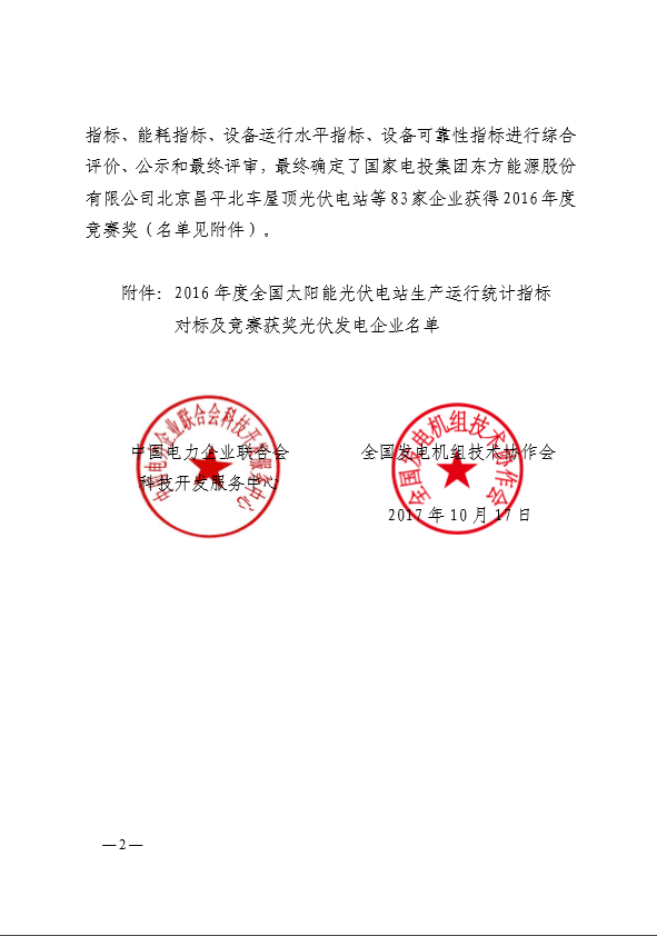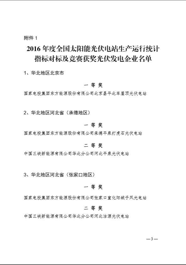 2016 年全国太阳能光伏电站生产运行统计指标对标及竞赛获奖名单公布:83家企业获奖