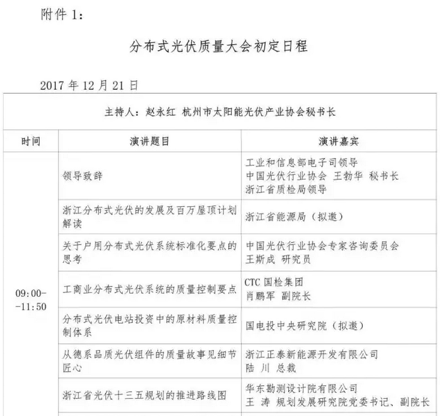 党的十九大鲜明提出建设“质量强国”战略,明确提出“我国经济已由高速增长阶段转向高质量发展阶段”,“必须坚持质量第一、效益优先”, 在此背景下,中国光伏行业协会及光伏們将于2017年12月21日在杭州望湖宾馆组织分布式光伏质量大会,大会将从分布式电站投资的质量控制、光伏系统的标准、产融一体的质量管理、产品全生命周期的品质细节、屋顶光伏系统的质量保障、中小型分布式光伏项目的未来发展等多方面对分布式光伏进行全方位质量探讨。会议详情如下: