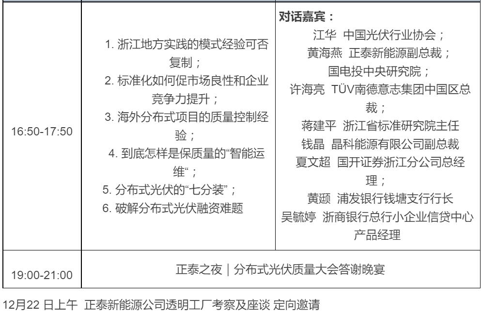 浙江作为我国分布式光伏发展的先驱省份,从政策到市场已经处于较为完善的发展水平,其发展历程中的经验教训也值得行业借鉴,2017年12月21日,由中国光伏行业协会主办、光伏們、浙江正泰新能源承办的2017年分布式光伏质量大会将在杭州望湖宾馆举行,大会将从分布式电站投资的质量控制、光伏系统的标准、产融一体的质量管理、产品全生命周期的品质细节、屋顶光伏系统的质量保障、中小型分布式光伏项目的未来发展等多方面对分布式光伏进行全方位质量探讨。