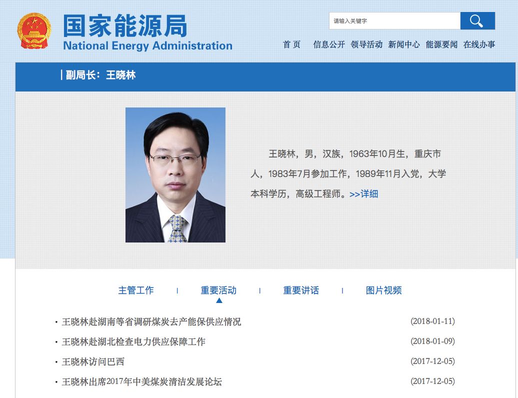 目前,在能源局官网上领导栏目仍然有王晓林,而在领导活动报道里,最后时间是1月11日,王晓林赴湖南等省调研煤炭去产能保供应情况。
