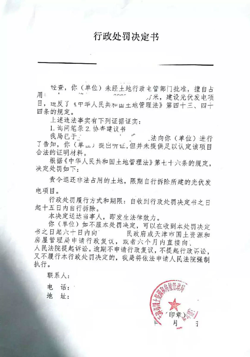 先回顾下2016-17年天津几个光伏电站收到的处罚单吧: