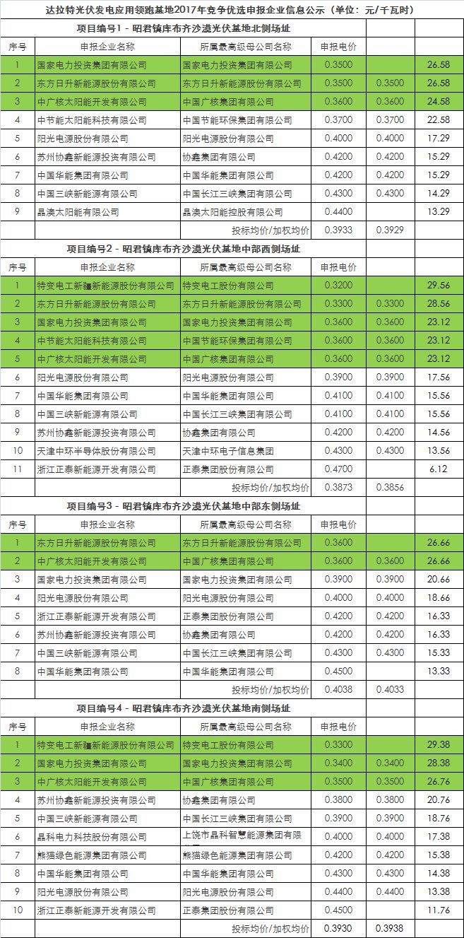最低价0.32元/kWh未中标,国电投、中广核、中节能中标达拉特旗领跑者项目!