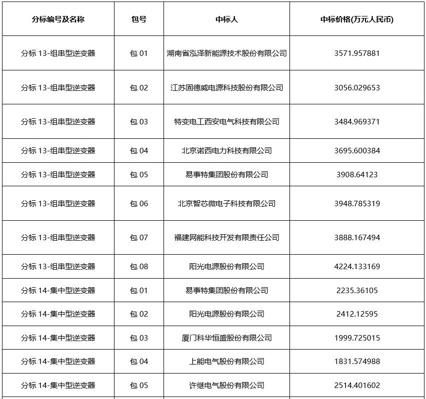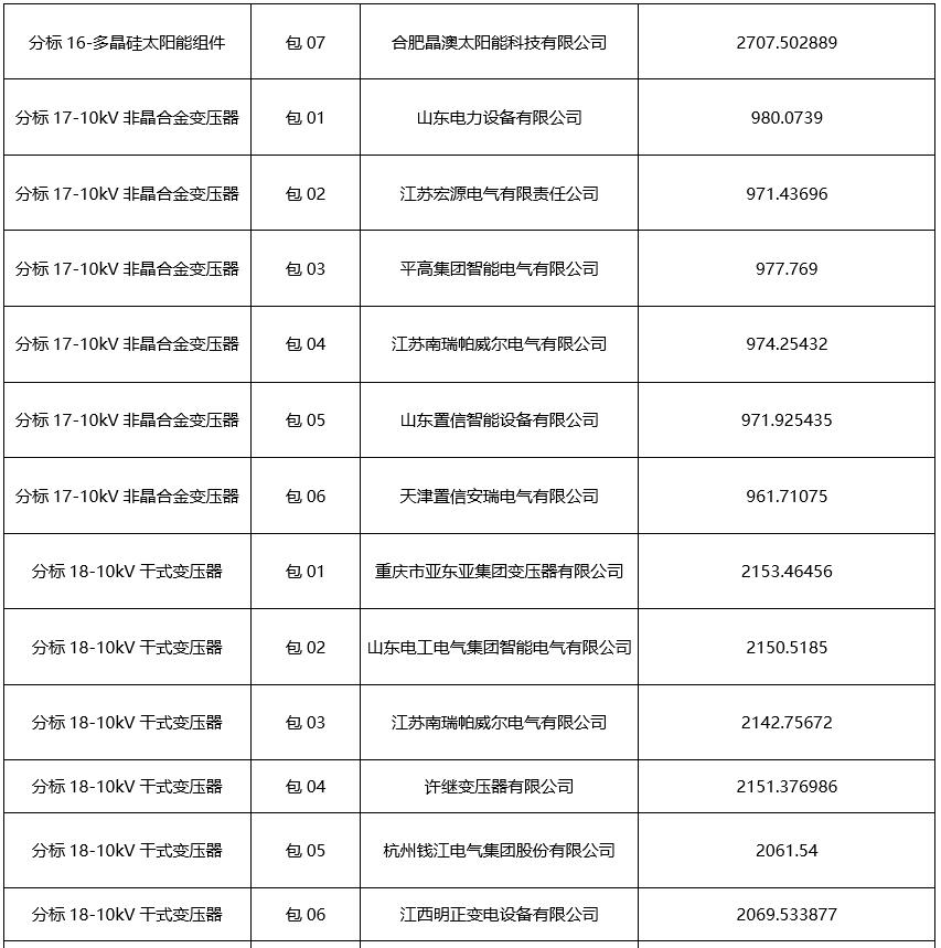 以下为国家电网有限公司2018年综合能源服务项目物资电商化集中招标逆变器、组件、变压器中标名单: