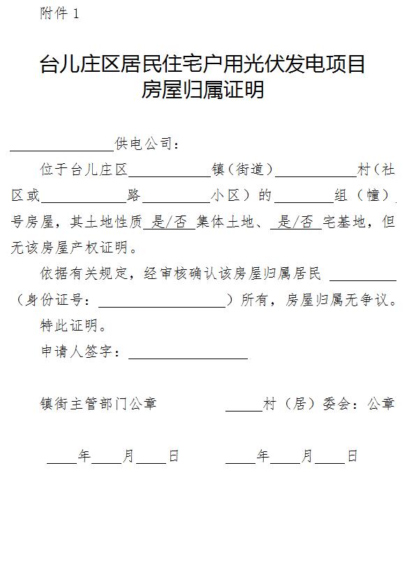 附件:1、台儿庄区居民住宅户用光伏发电项目房屋归属证明