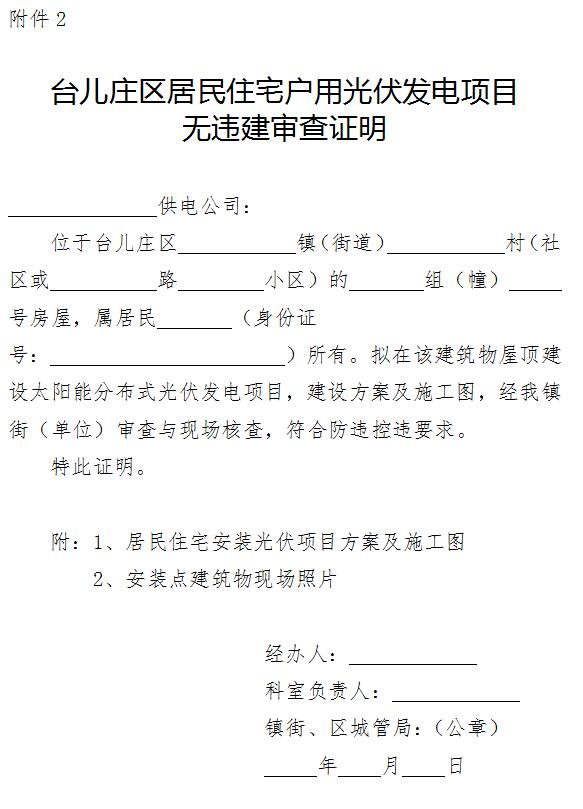 2、台儿庄区居民住宅户用光伏发电项目无违建审查证明