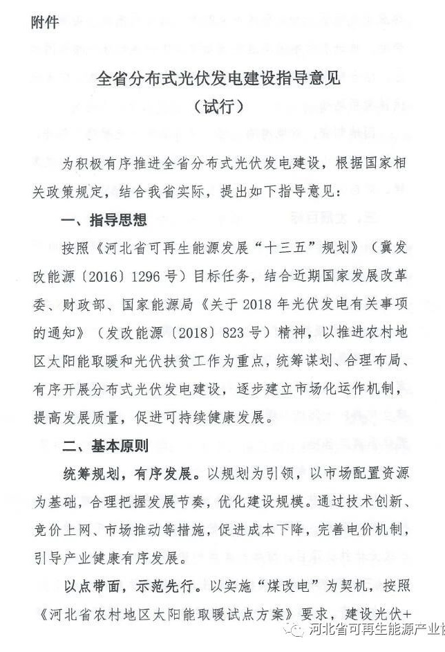 支持“光伏+热源”供暖、光伏扶贫,豁免发电业务许可!河北印发《全省分布式光伏发电建设指导意见(试行)》的通知