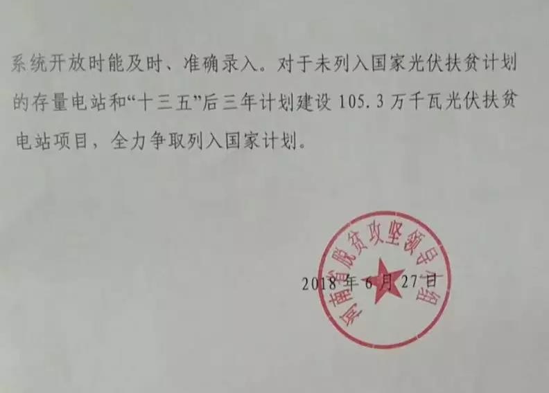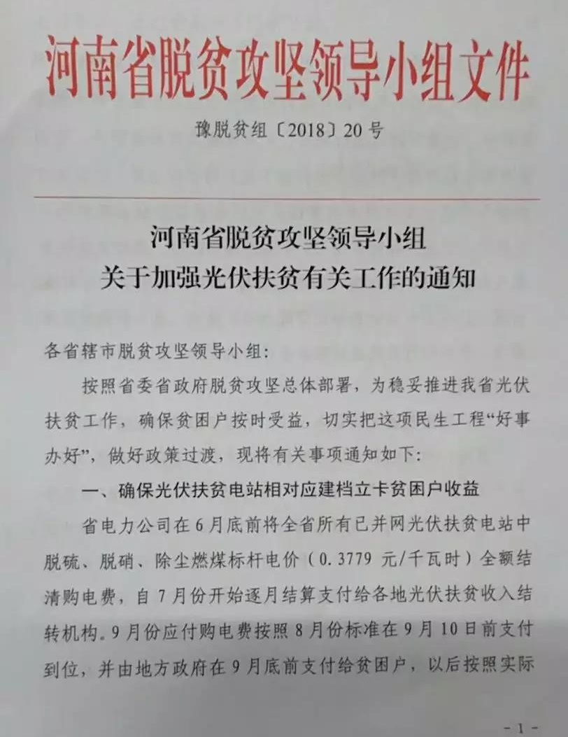 河南省脱贫攻坚领导小组的文件明确展示了河南有约1.97GW的无指标光伏扶贫电站......