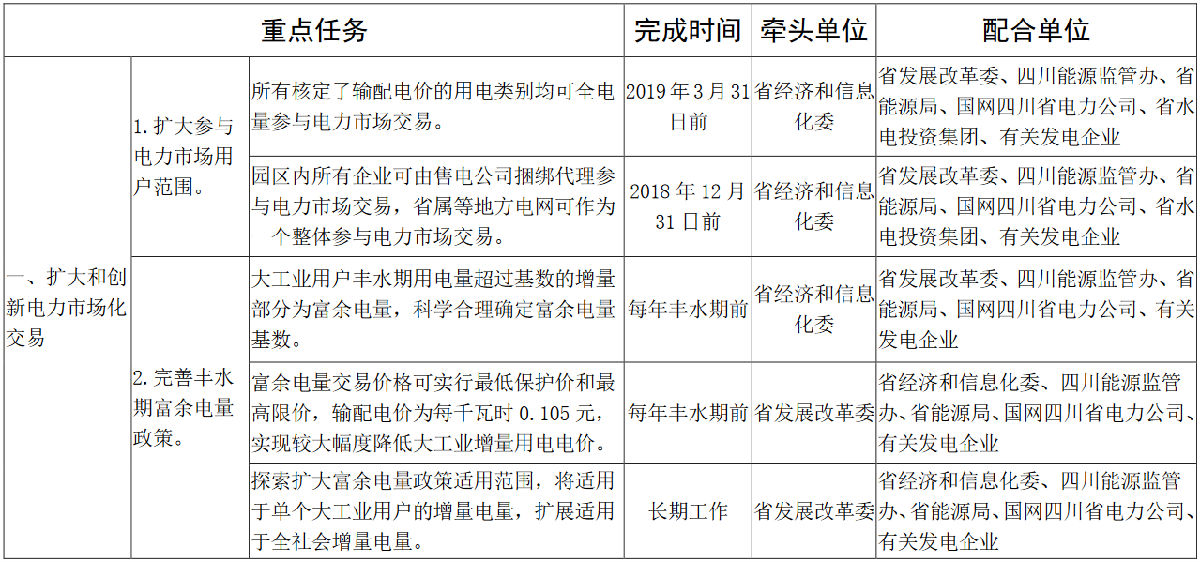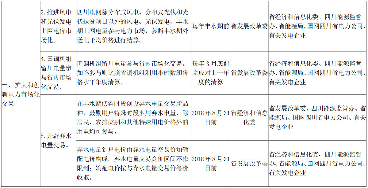 3.推进风电和光伏发电上网电价市场化。四川电网除分布式风电、分布式光伏和光伏扶贫项目以外的风电、光伏发电,丰水期上网电量参与电力市场,参照丰水期外送电平均价格进行结算,产生的价差空间用于实施丰水期居民电能替代政策。
