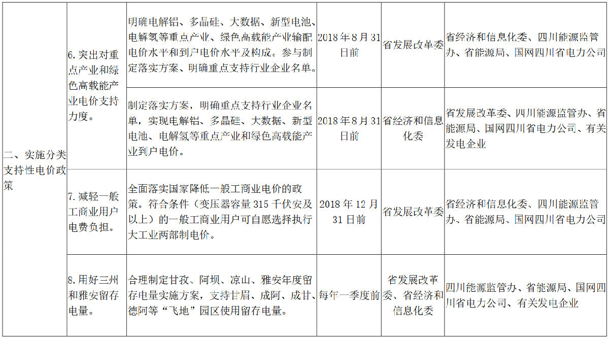 (二)实施分类支持性电价政策。综合运用市场、计划电量调节、富余电量、留存电量等各项支持政策,多措并举、重点突破,将电价扶持导向与产业区域布局、产业培育方向结合起来,根据现实基础和产业对电价承受能力“分类施策”“精准降价”。