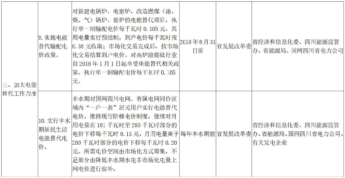 (三)加大电能替代力度。鼓励企业实施电能替代,鼓励居民用户多用电,提高终端能源消费的电能消费、清洁能源消费比重。