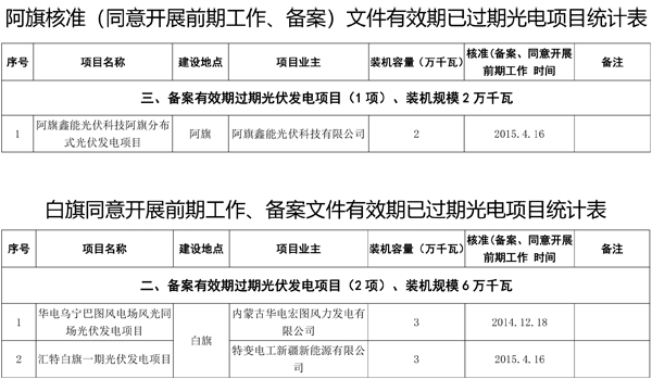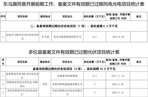 内蒙古锡盟废止20项合计602MW光伏备案文件有效期过期项目