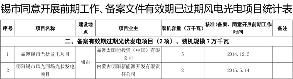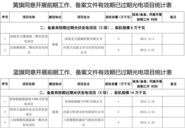 7月20日,内蒙古锡林郭勒盟发改委连发10条废止有关风电光伏发电核准(同意开展前期工作、备案)文件的通知,废止锡市、阿旗、白旗、东乌旗、多伦县、黄旗、蓝旗、太旗、西苏旗20个规模共计602MW的备案文件有效期过期的光伏发电项目,26个、规模共计1691MW的(同意开展前期工作、备案)的文件有效期过期的风电项目。