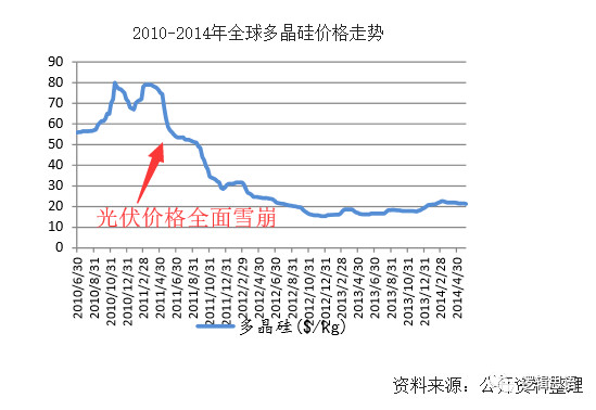 多晶硅料从2011年初的80美元/公斤,短短一年内就暴跌至20美元/公斤。
