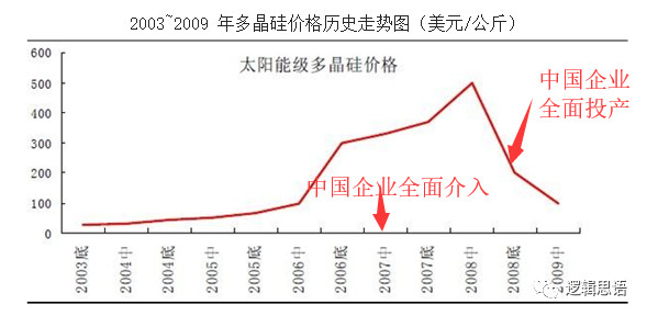 由于超高额度补贴,这导致2008年多晶硅料价格,疯狂涨到400美元/公斤,甚至超过了黄金价格!