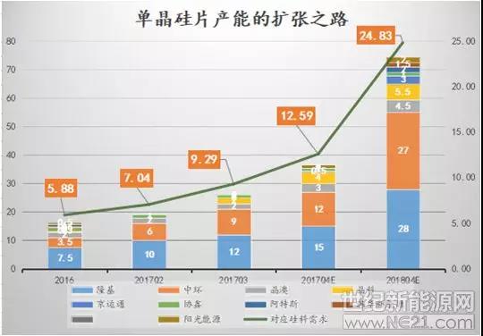 对于产能过剩,张治雨认为2017年单晶硅片产能扩张十分迅猛的背后是技术变革,是因为导入新的金刚线切割技术获得了成功。“在没有增加切片机的情况下,产能又扩充了30%,两者共同导致硅片产能过剩异常严重。如果价格合适,比如单晶硅片5块钱,过剩率达到了70%。”