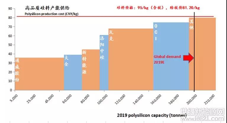 “真正硅料产能对单晶硅片的产能峰值会出现在今年的K4,明年会略有上升。到今年下半年时高品质单晶硅片的需求量会达到25万吨的量级,所以高品质的单晶硅片会出现供给的结构性矛盾。这个矛盾使得我们必须使海外的两个产能保持存活的状态,高品质的单晶硅片95元的价格就是底部,根据最新的情况分析,9月份新能源会作出新的检修,高品质硅料价格会破100元。”