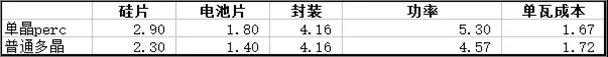 单晶perc组件成本已经低于多晶组件
