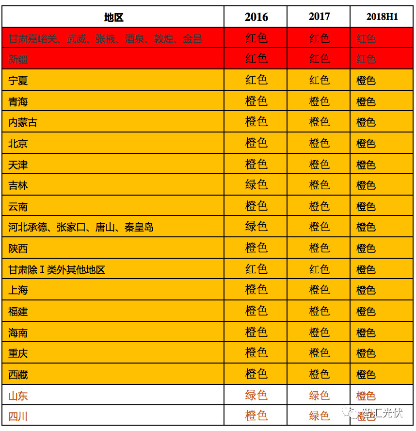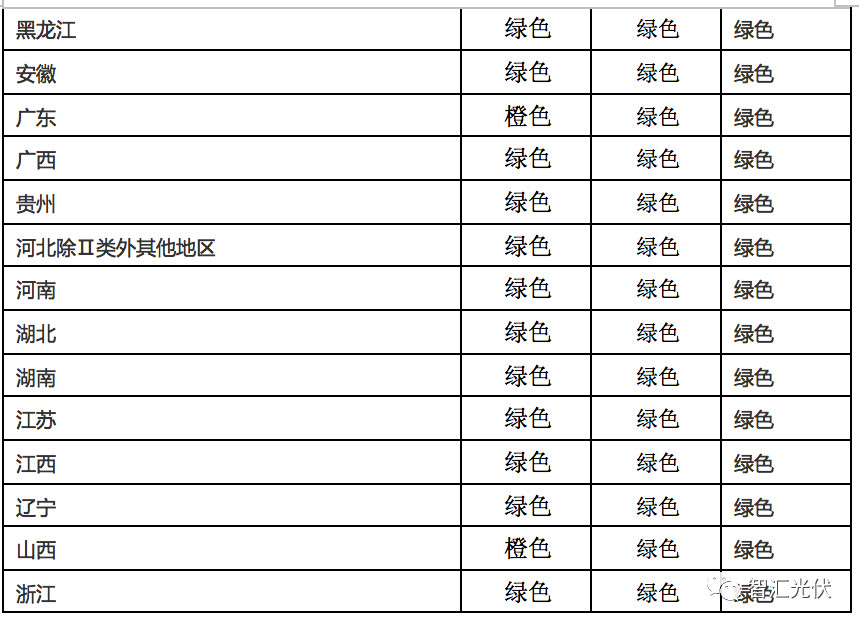 根据《关于完善光伏发电建设规模管理的通知(征求意见稿)》中的说法,红色、绿色变橙色、连续橙色的地区,下一年度都将没有规模指标。