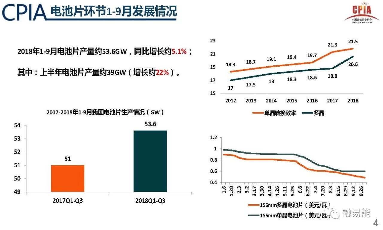 1-9月,电池片产量约53.6GW,同比增长5.1%;其中,上半年电池片产量约39GW,增长约22%。