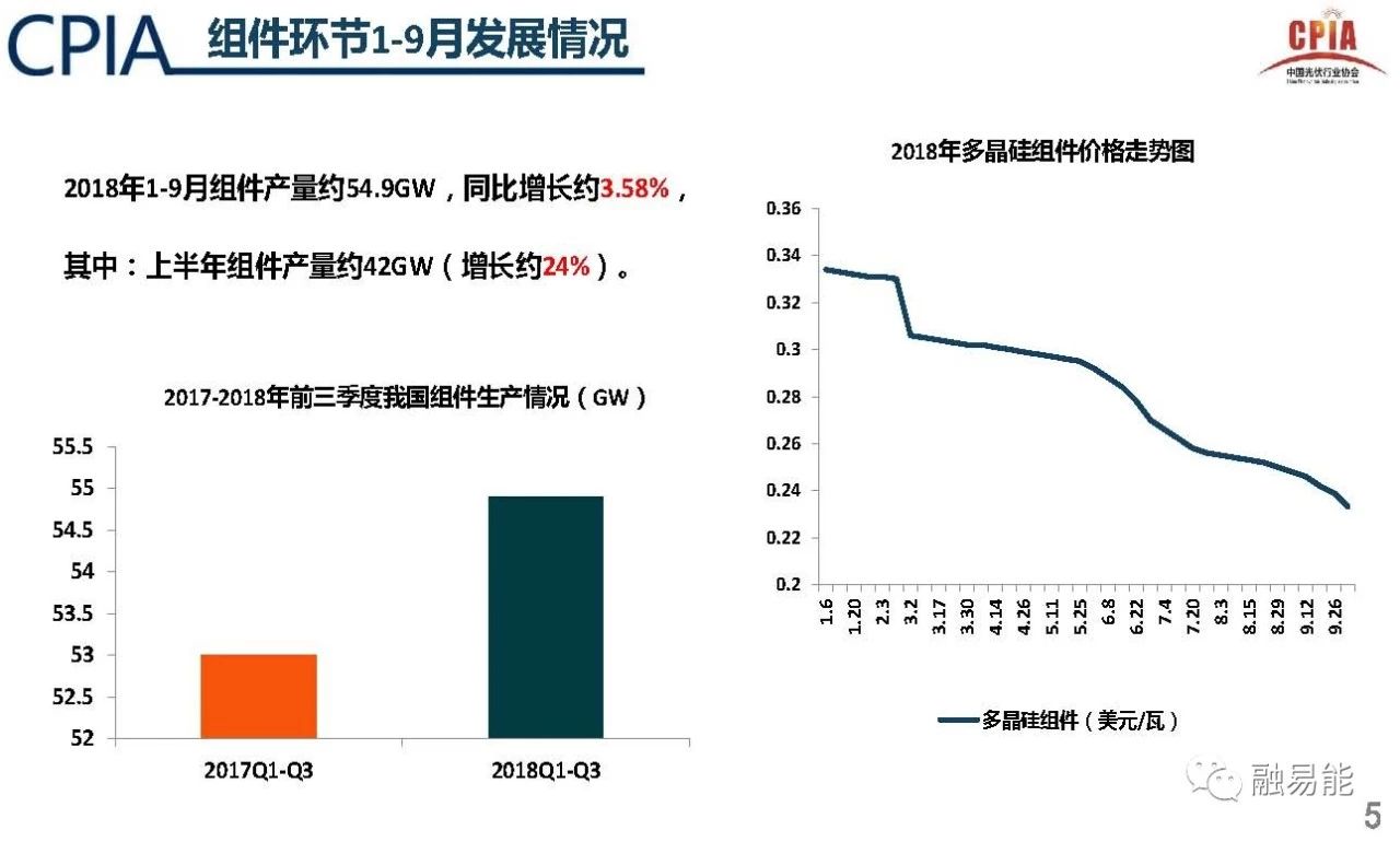 1-9月,组件产量54.9GW,同比增长约3.58%;其中,上半年组件产量约42GW,增长约24%。