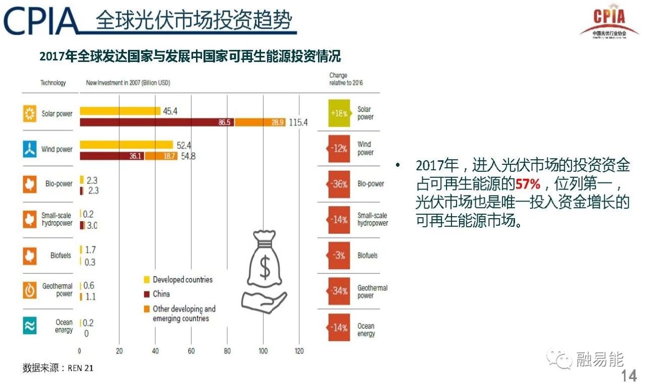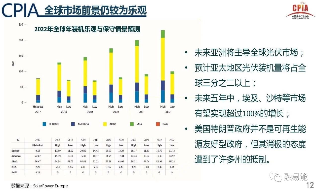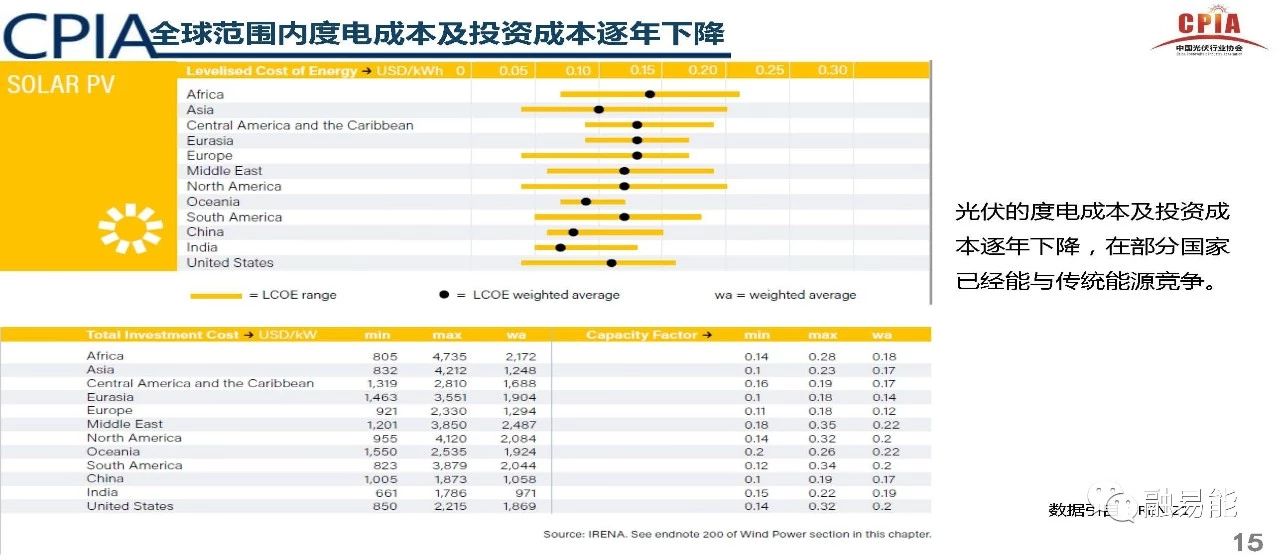 2、从全球范围视野分析,光伏发电成本,已经在多地区/国家低于常规能源,光伏市场被激发,预计全球市场仍将保持稳定甚至增长势头;