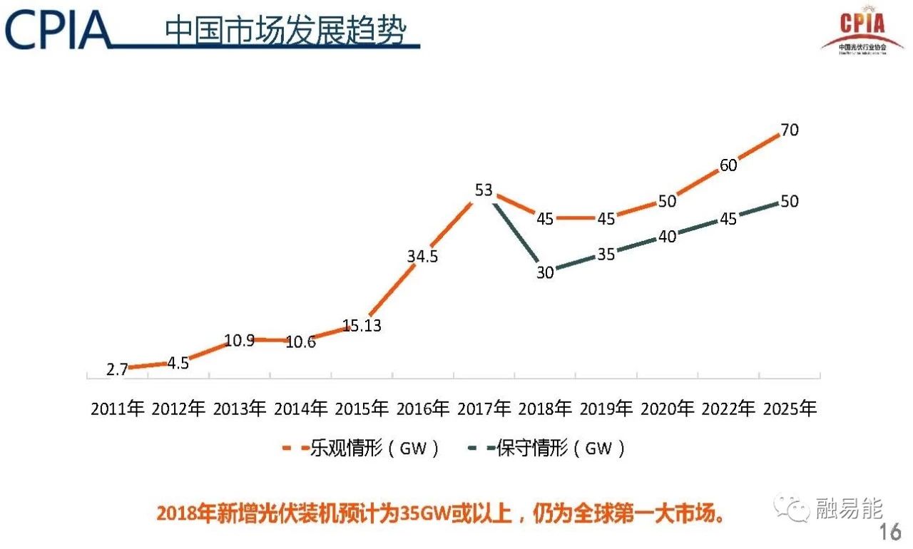 2018年我国新增光伏装机预计35GW或以上,仍位居全球第一大市场。