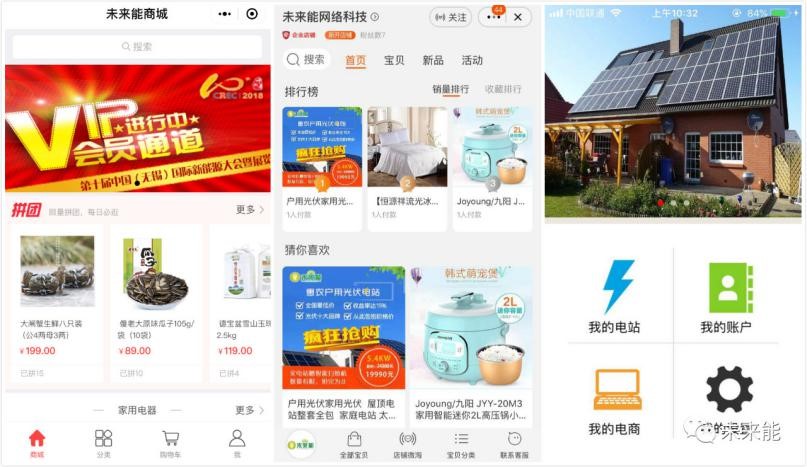 2018年开展一站式购物平台拓展业务。入驻小程序、微商城、淘宝与未来能APP同步开展,在深耕惠农电站的业务同时发展生活一体化购物平台,为千家万户带去更加便利优惠与优质的电商购物服务。打造以互联网电商平台为切入点的户用新能源。