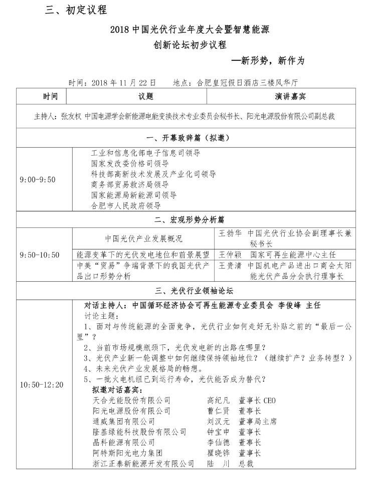 (三)行业专家主题报告:围绕光伏发电技术、政策、电网、去补贴路径等方面进行详细报告。