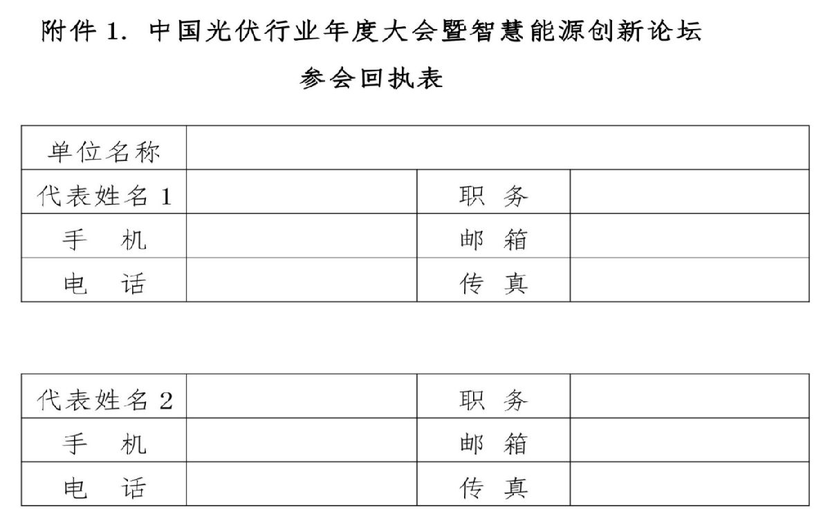 附件:1.中国光伏行业年度大会暨智慧能源创新论坛参会回执表