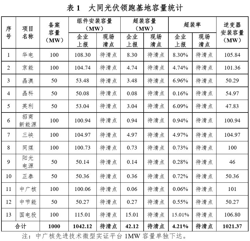 大同采煤沉陷区国家先进技术光伏示范基地一期(以下简称大同基地)是我国首个光伏发电领跑基地,于2015年6月获得国家能源局批复,2015年8月开工建设,2016年6月竣工验收完成。该基地建设规模100万千瓦,包括7个10万千瓦和6个5万千瓦的单体项目。