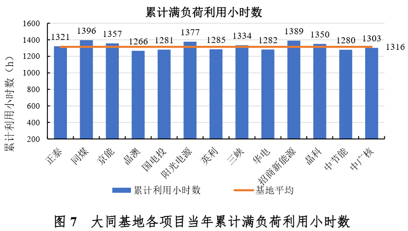 截至今年10月,基地累计平均满负荷利用小时数为1316小时,同煤累计利用小时数最高(1396小时),其他累计小时数超过平均水平的项目有招商新能源(1389小时)、阳光电源(1377小时)、京能(1357小时)、晶科(1350小时)、三峡(1334小时)和正泰(1321小时)。