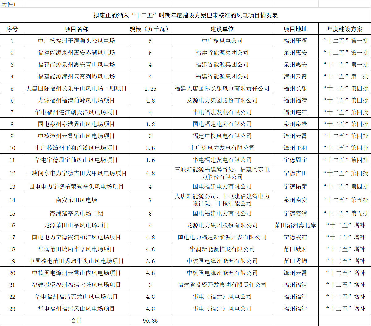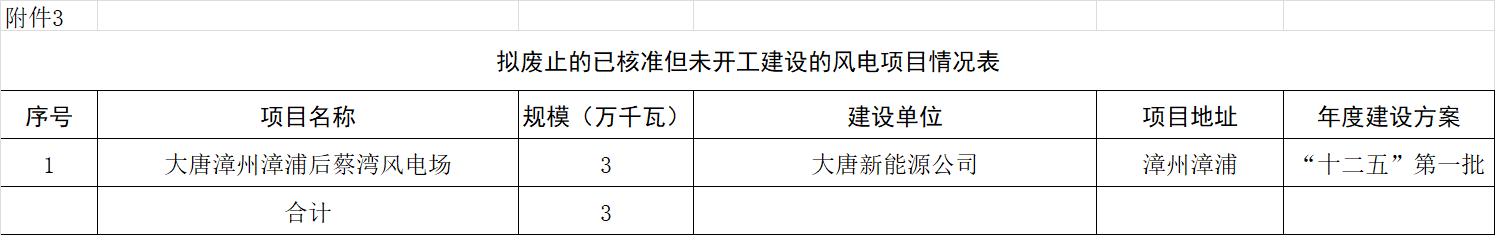 1.拟废止的纳入“十二五”时期年度建设方案但未核准的风电项目情况表
