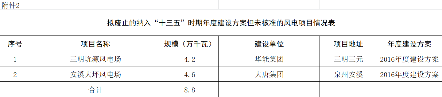 2.拟废止的纳入“十三五”时期年度建设方案但未核准的风电项目情况表