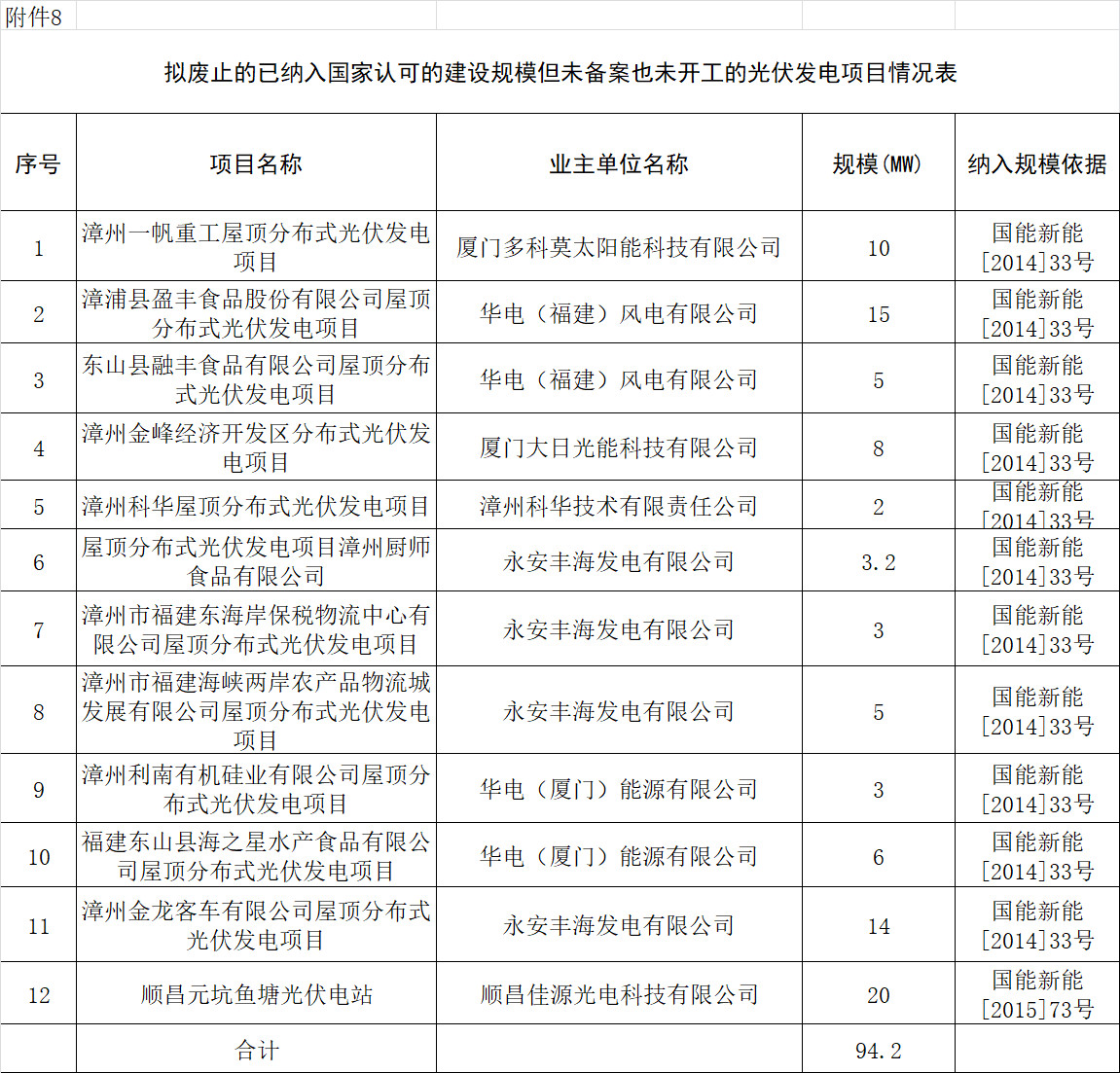 福建省发展和改革委员会关于拟废止的“十二五”以来风电、光伏发电项目的公示