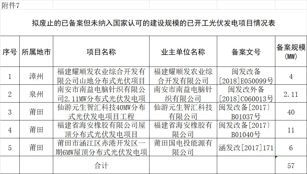 7.拟废止的已备案但未纳入国家认可的建设规模的已开工光伏发电项目情况表