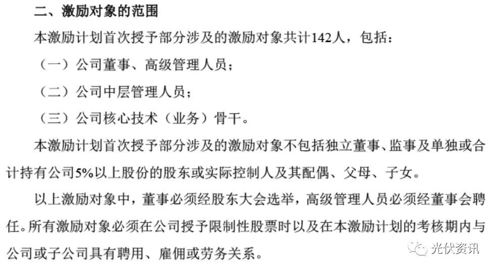 阳光电源12月11日发布公告《2018年限制性股票激励计划(草案)》,公告显示,本次激励计划首次授予部分涉及的激励对象共计142人,包括公司董事、高级管理人员,中级管理人员和公司核心技术(业务)骨干。
